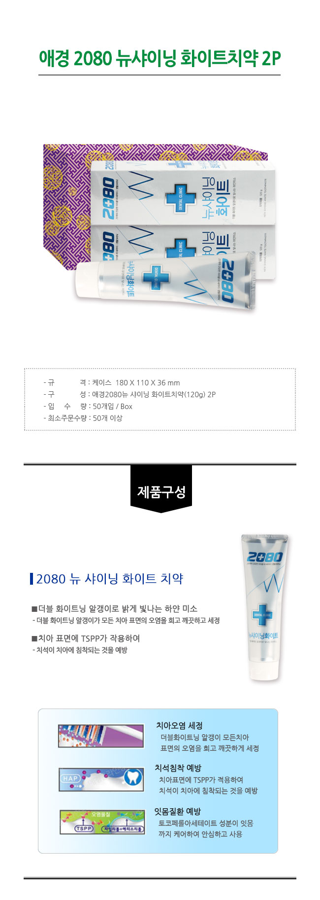 애경 2080뉴샤이닝화이트치약 2P