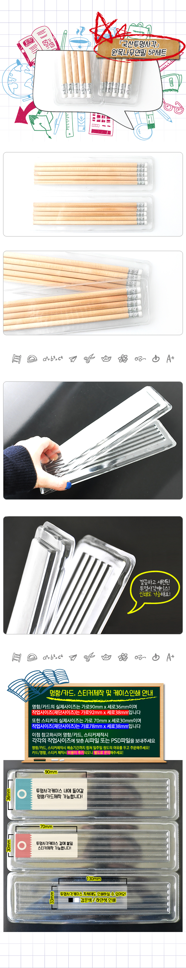 • [국산]투명사각·원목나무연필5P세트